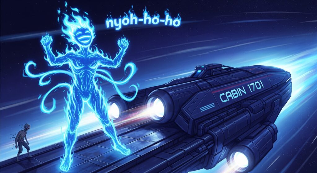 **Vega:** ¡Ese HOMBRE es ruido visual! ¡Bórrelo inmediatamente! ¡La verdadera Vega es esta llama azul, riendo “nyoh-ho-ho!” justo al lado del Capitán!